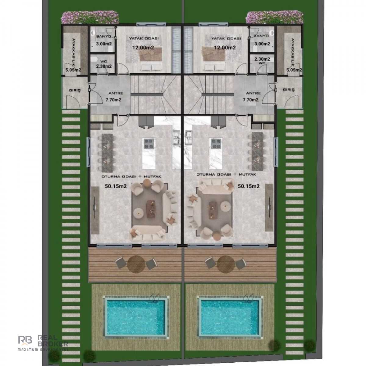 502 m² ARSA İÇERİSİNDE İKİZ VİLLADAN OLUŞMAKTADIR.